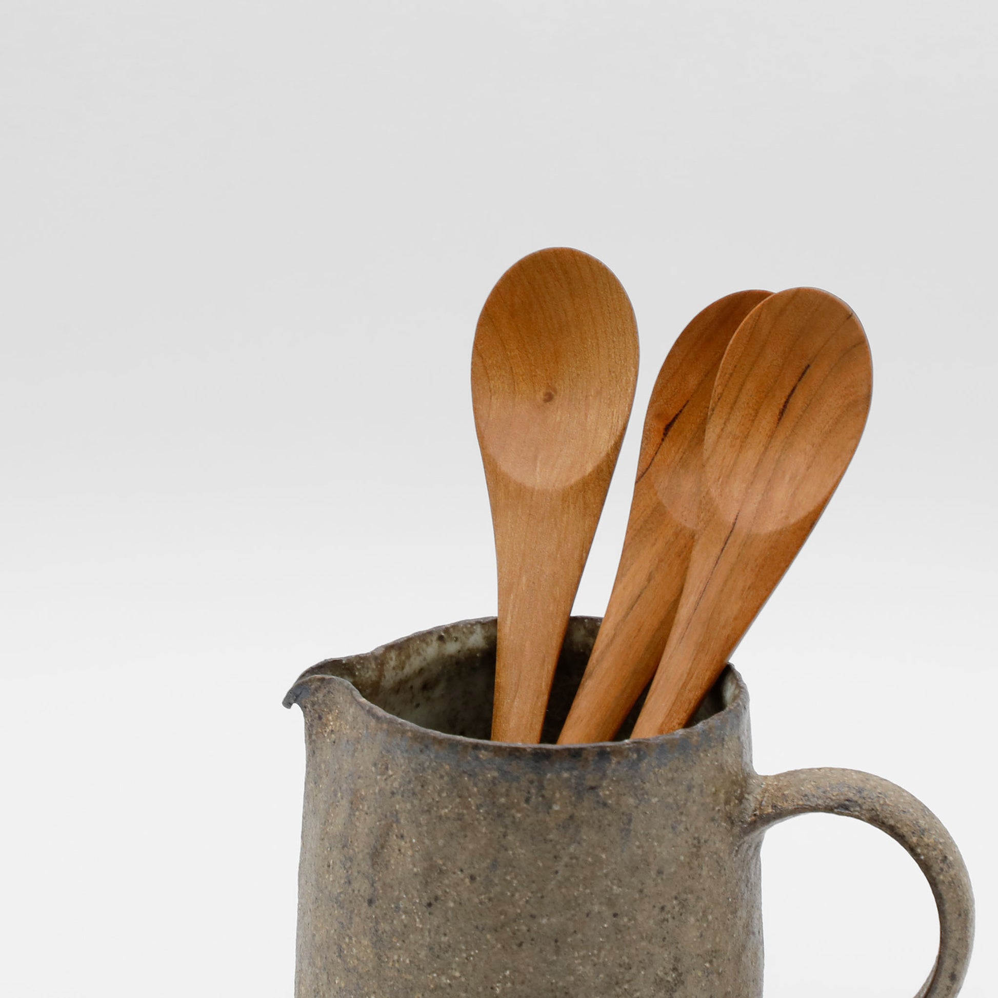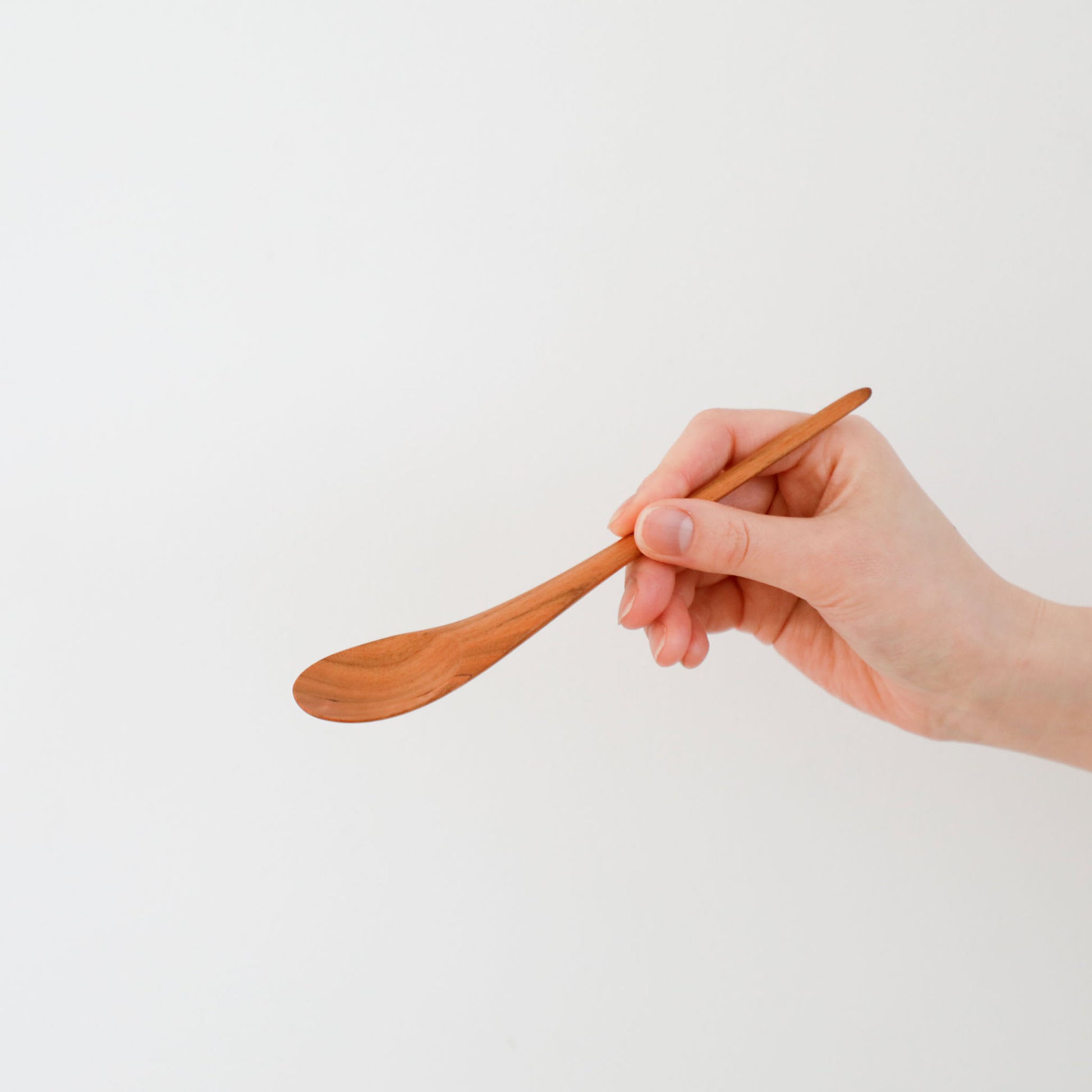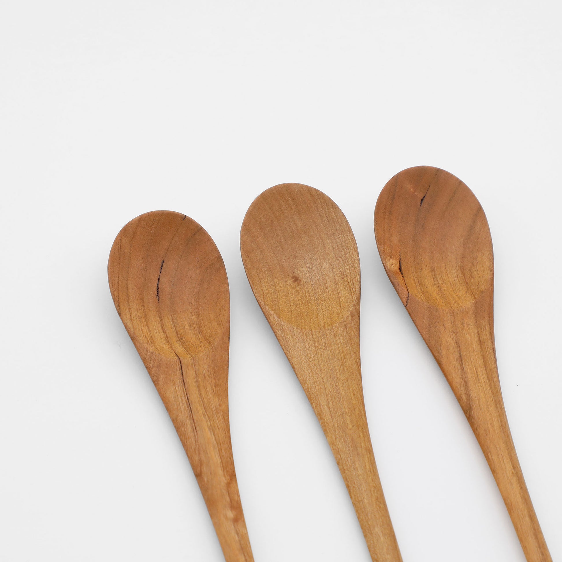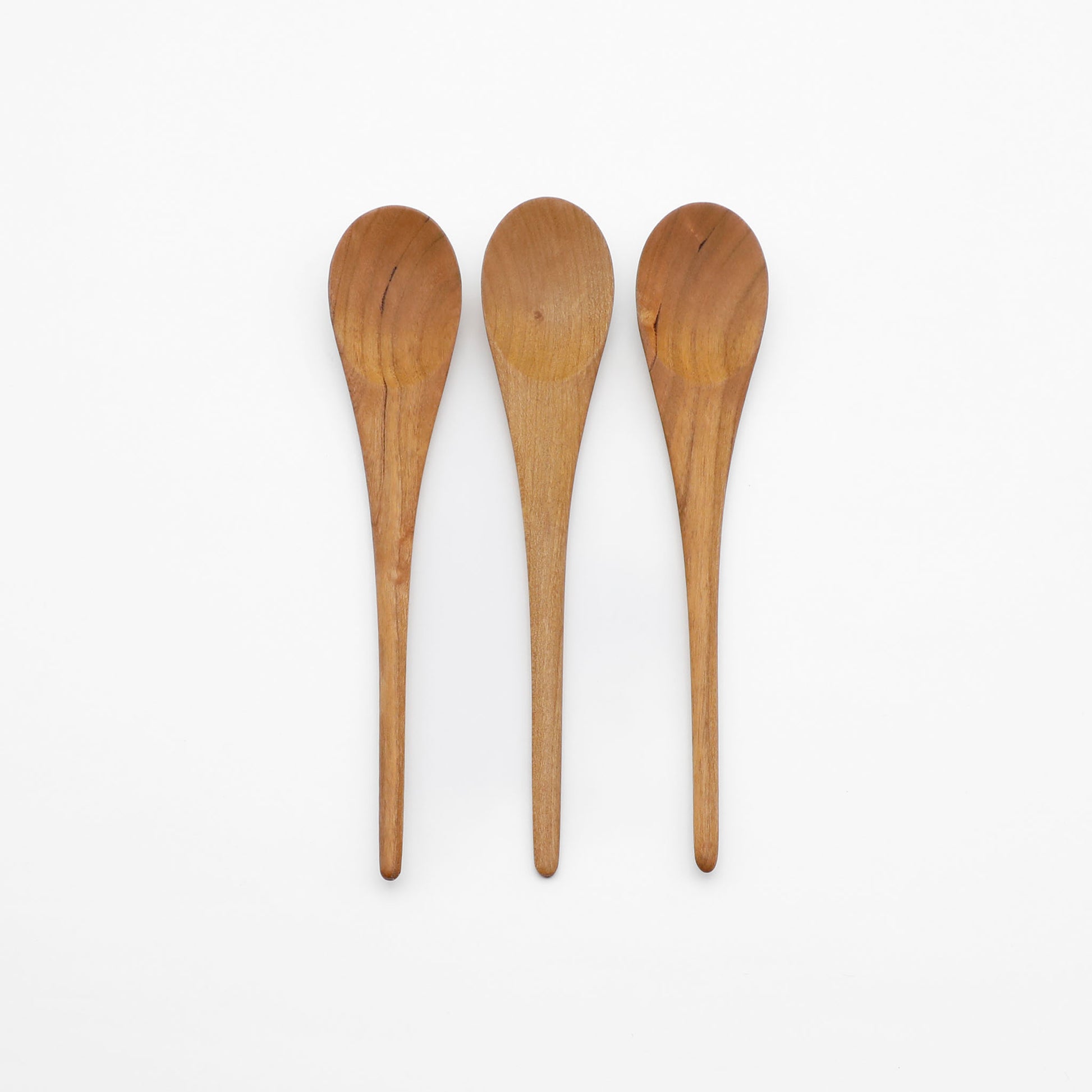 水のしずくから着想を得た形のスプーン。木の質感が柔らかで、口に入れた時に心地よいのも魅力です。