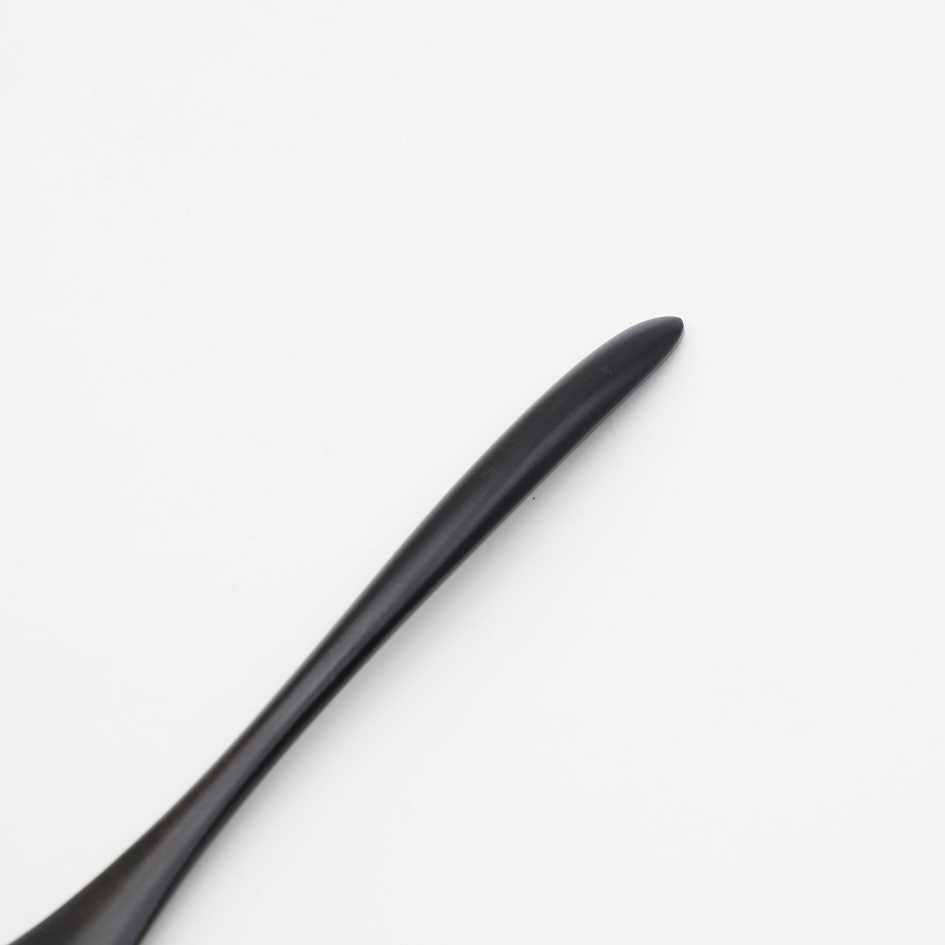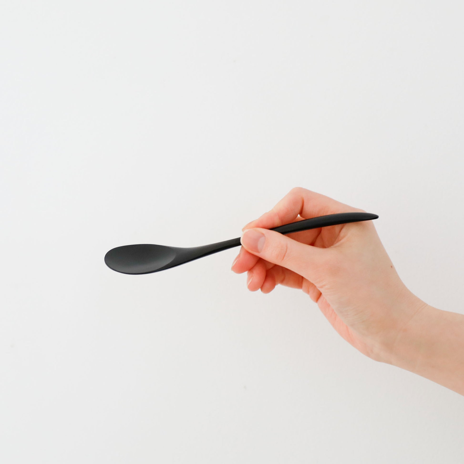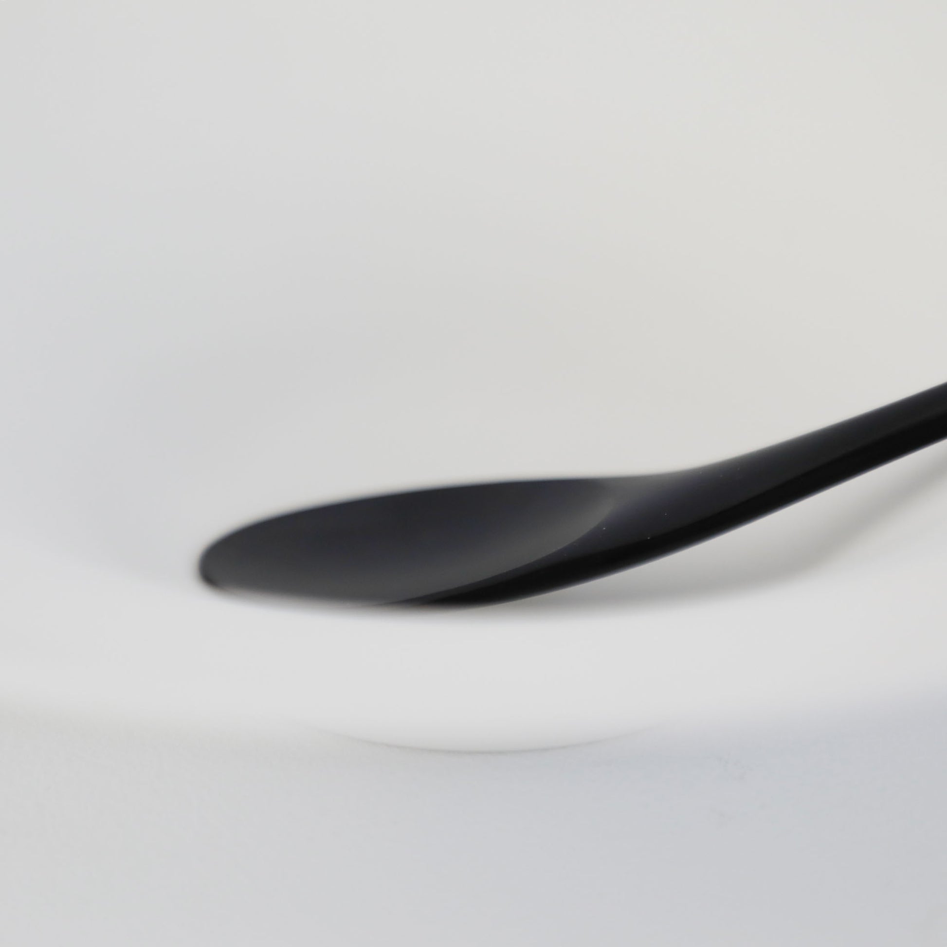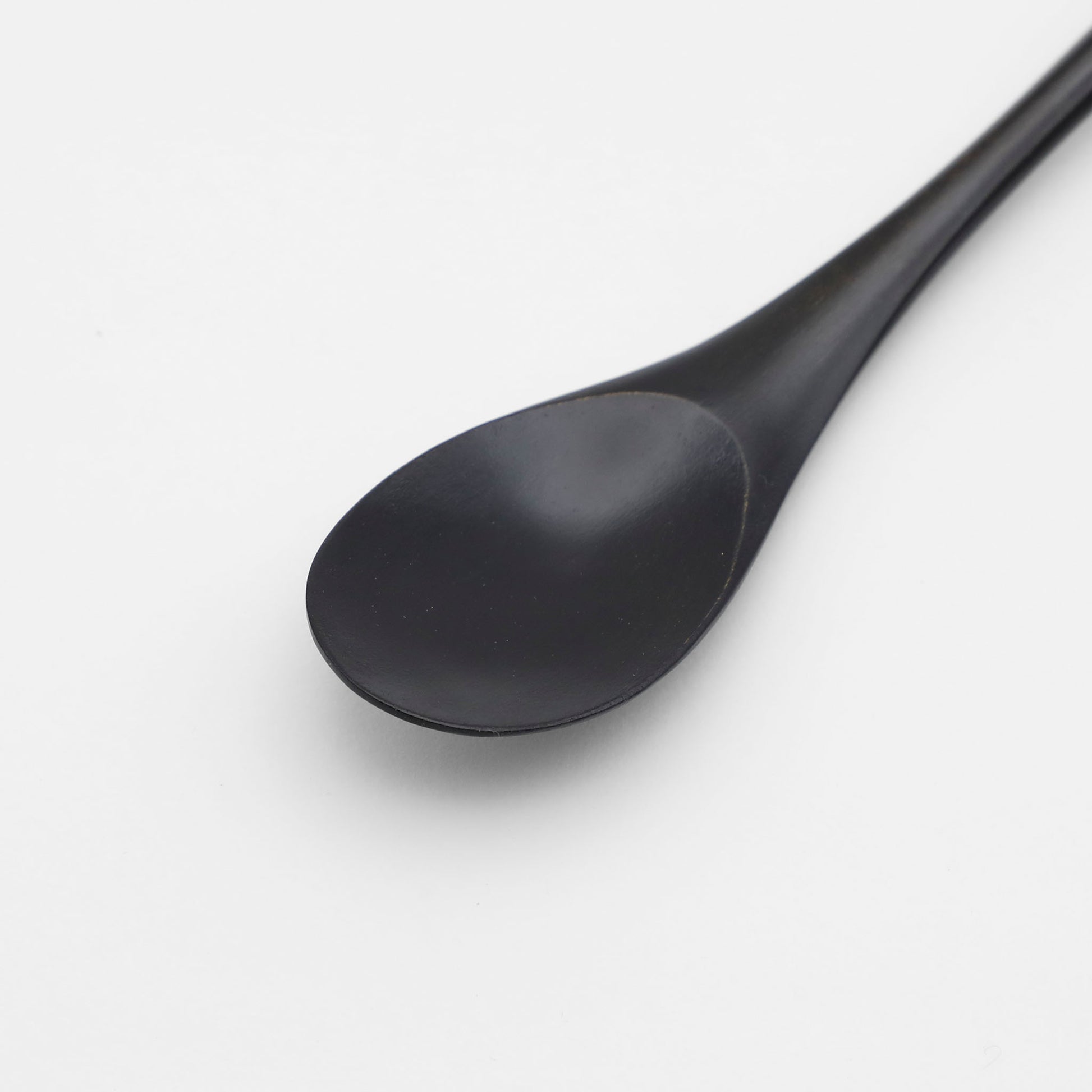 黒漆をほどこしたスプーン。掬う部分が浅く、柄も長くすっきりとしたデザイン。軽やかでありながらも端正な佇まいで日々の食卓を彩ります。