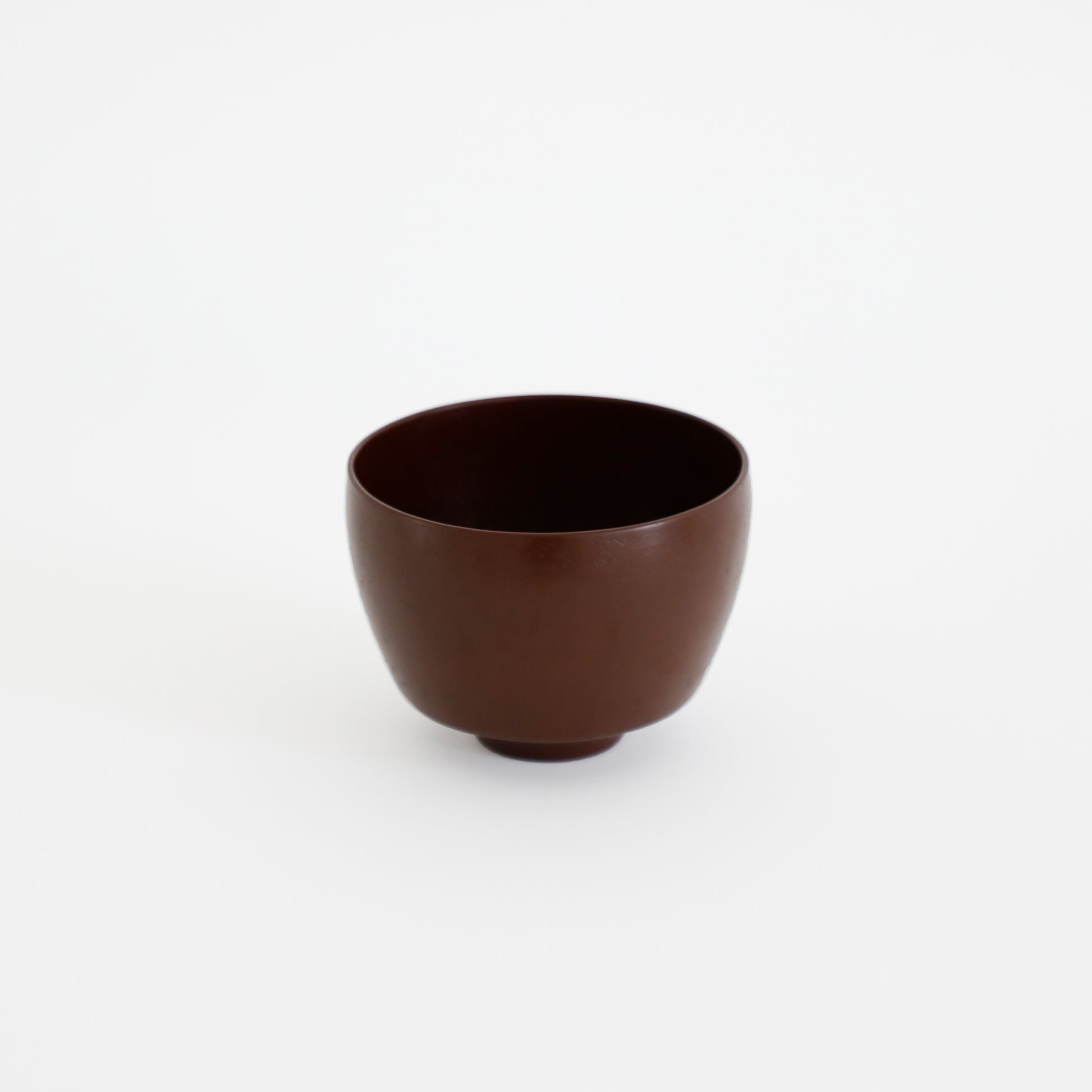 マットで奥深い艶を持ち、古物のような風合いが印象的です。小さめの高台と縁にかけてゆるやかに広がる独特な形。漆=和という概念を取り払い、日々の食卓のさまざまな場面で