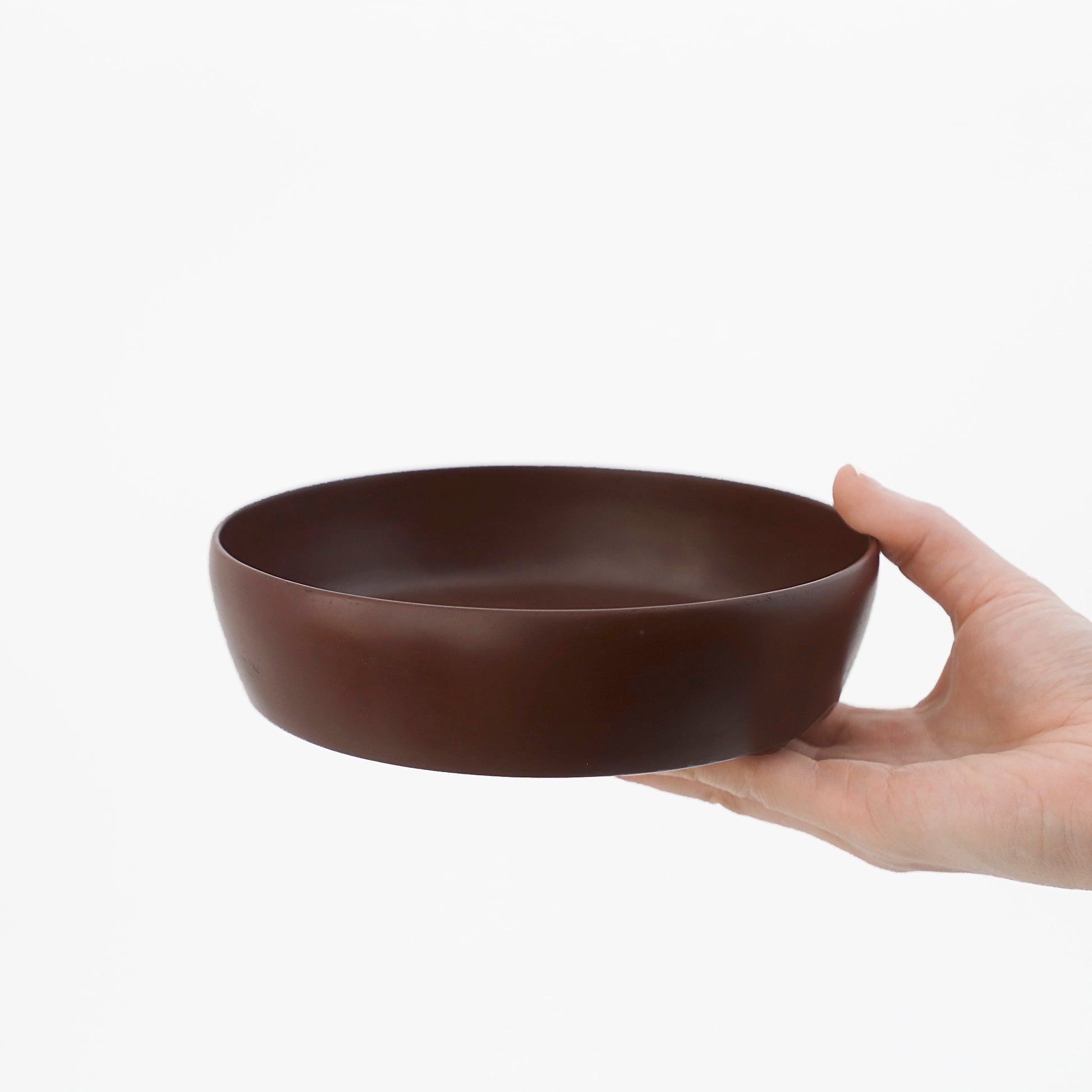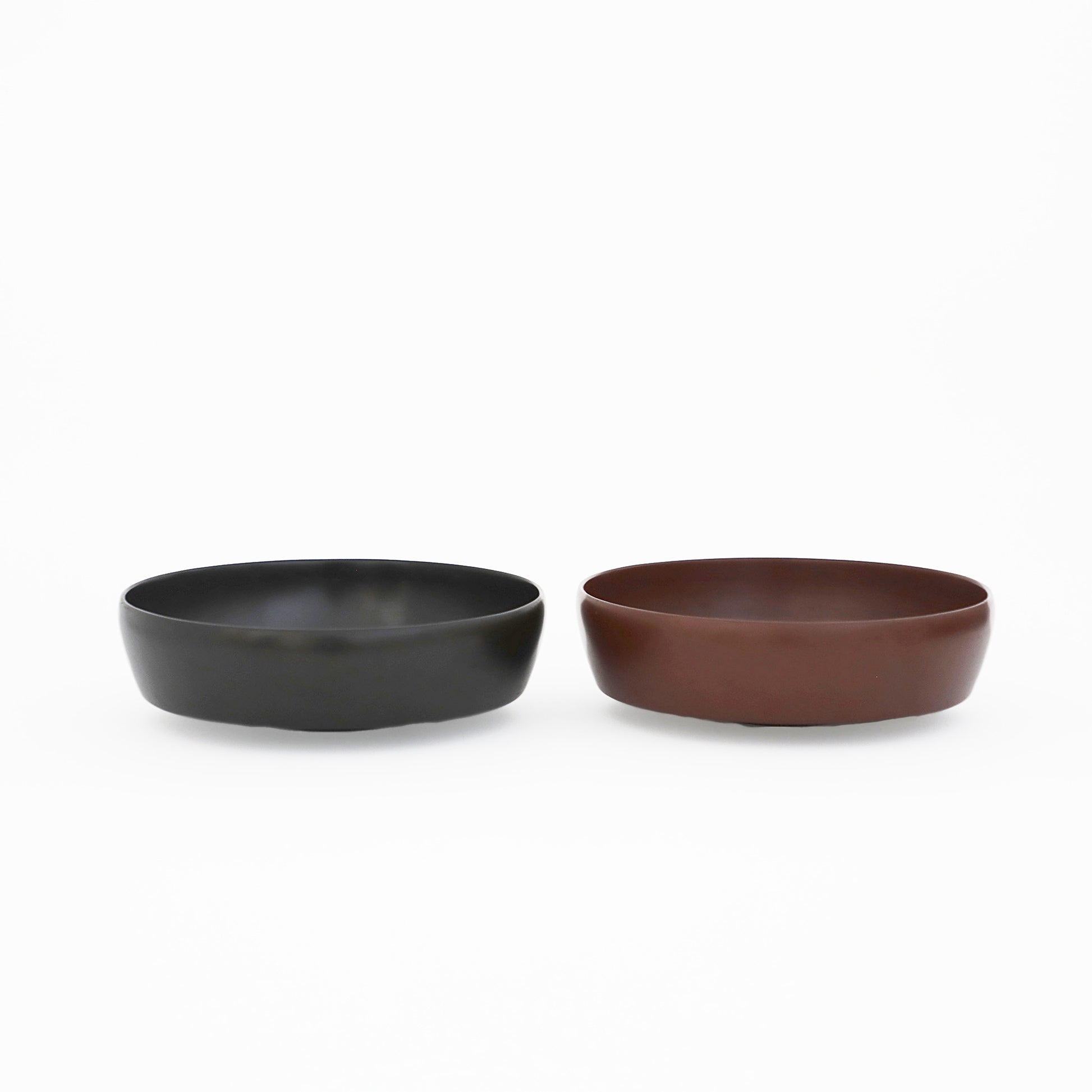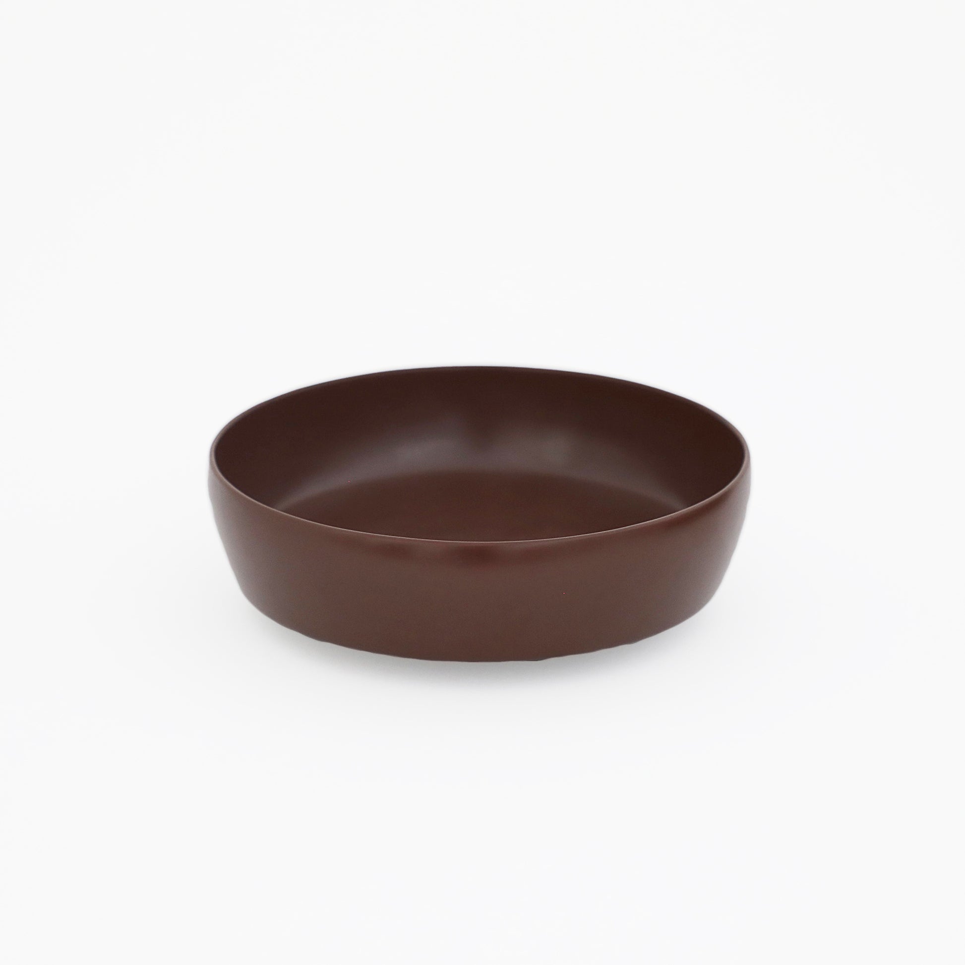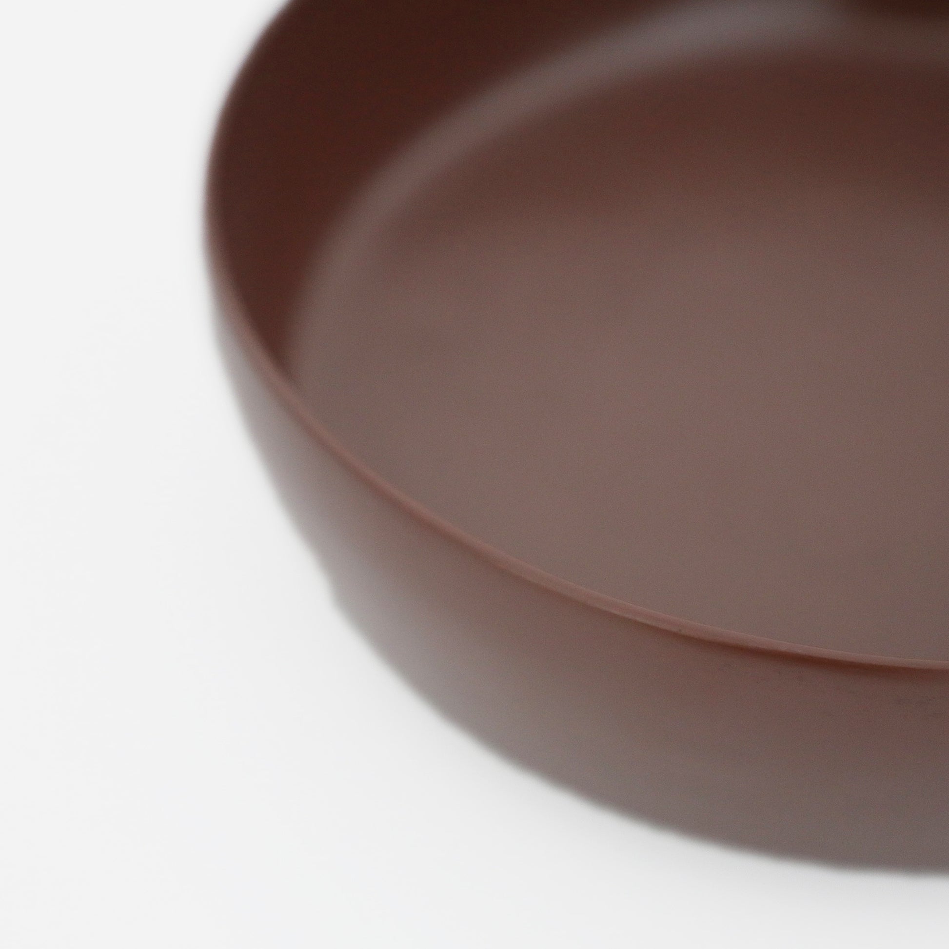 マットで奥深い艶を持ち、磨き跡がかすかに残った独特なテクスチャーの漆器。立ち上がった縁が手に取りやすく、お料理の盛り皿としてはもちろん、小物を入れてお部屋に置いたりと用途なさまざまに。