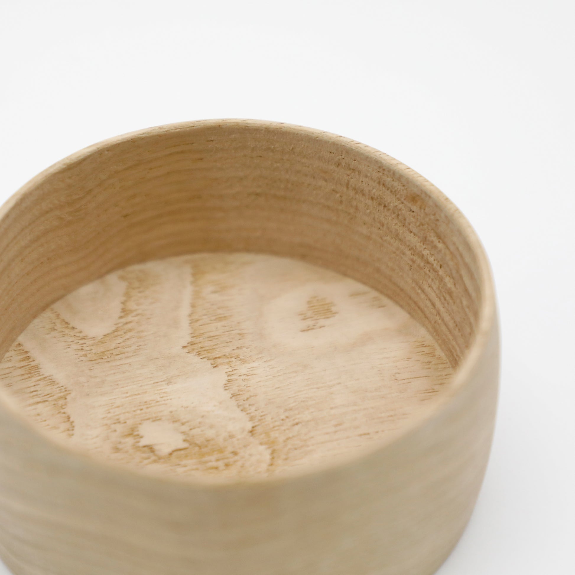 個性的な木目の栗の筒鉢。無垢ならではの表情を愉しんでいただけます。