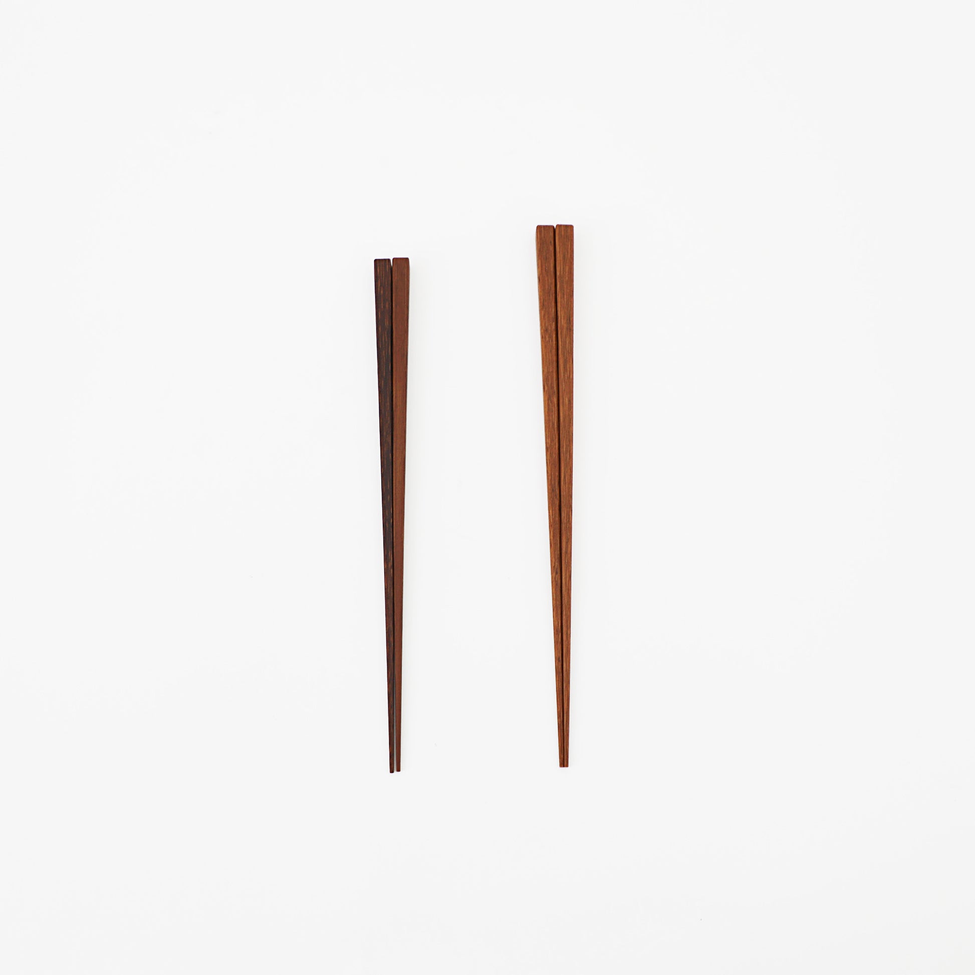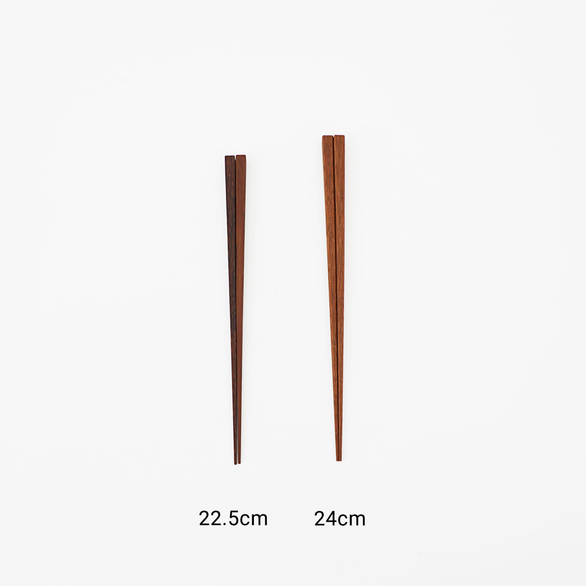 先端にかけて細く、竹独特のしなりもある為、食べものも掴みやすいお箸。長さが22.5㎝と24㎝よりお選びいただけます。燻した竹に拭き漆で仕上げており、落ち着いた佇まいも印象的です。