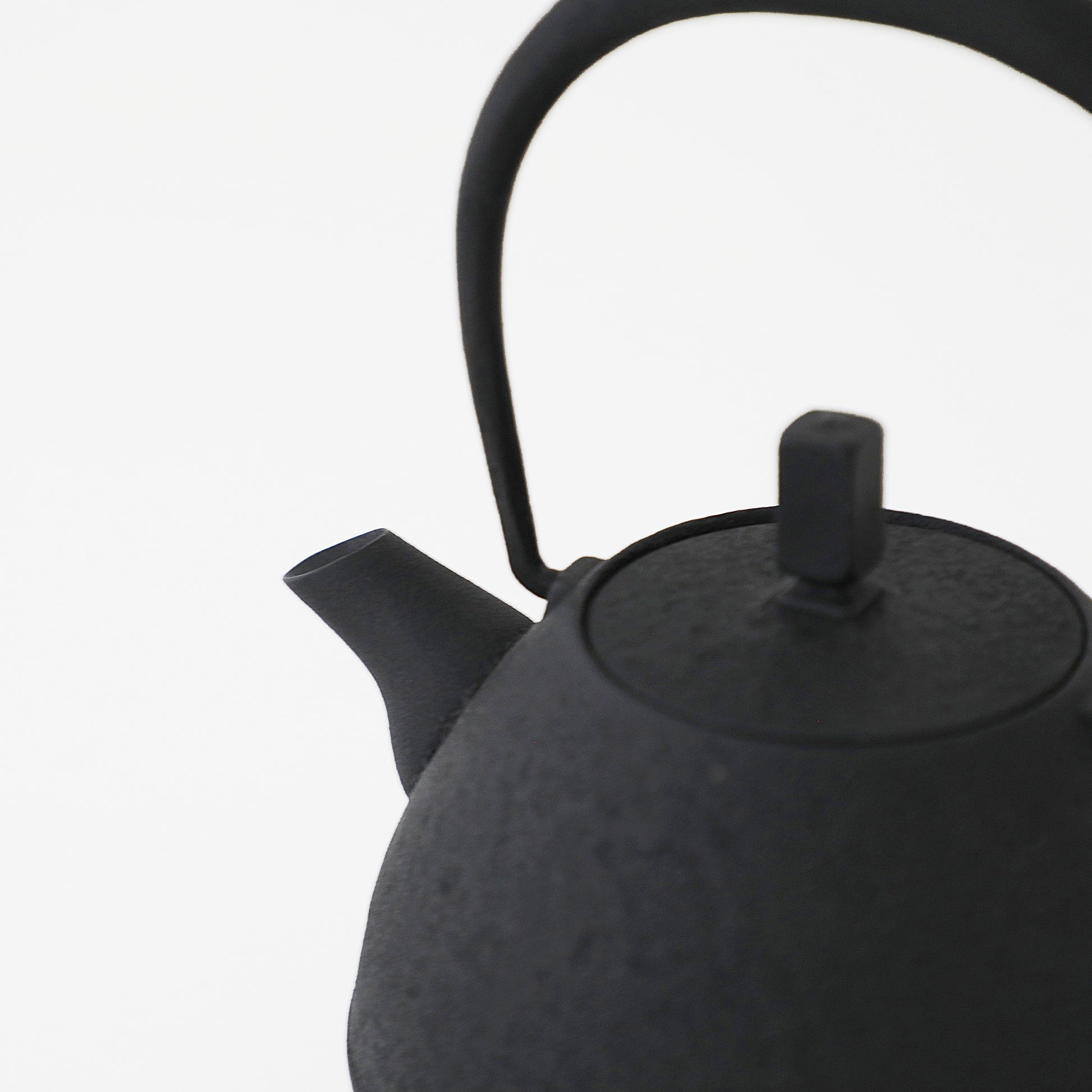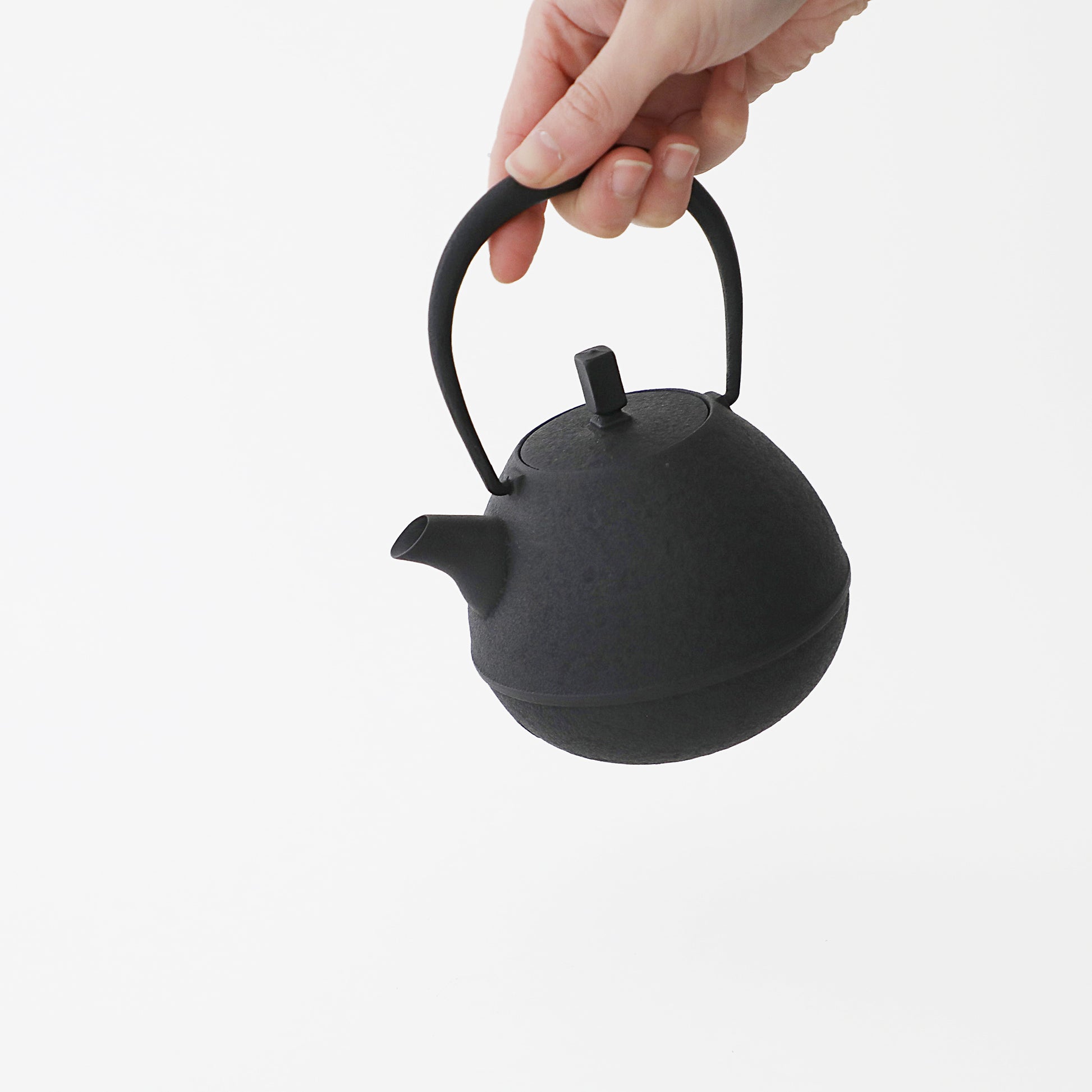 鉄の質感や色合いがシックな印象の鉄瓶です。時間の経過とともにさまざまな表情を見せてくれます。重厚感がありながら凛とうつくしい丸いフォルム。鉄分を含んだまろやかな白湯をお愉しみいただけます。